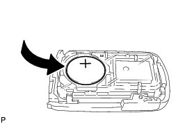 (1) Install a new transmitter battery (lithium battery: CR2032) with the positive (+) side facing upward, as shown in the illustration.