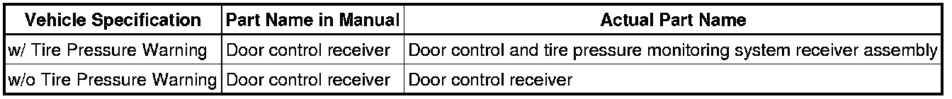 (a) The type of door control receiver used on this model differs according to the specifications of the vehicle. The expressions listed in the table below are used in this section.
