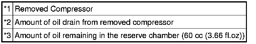 (The amount of oil inside a new compressor: 100 (+15) cc (6.10 (+0.92) fl.oz)) - (The amount of oil remaining in the old compressor A + oil remaining in the reserve chamber: 60 cc (3.66 fl.oz)) = (The amount of oil to be removed from the new compressor)