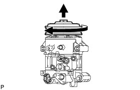 (d) Rotate the pulley once in the direction shown by the arrow while quickly turning the compressor so the pulley is up (*3).