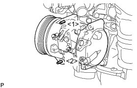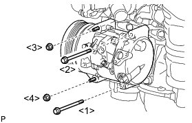 (b) Install the compressor assembly with pulley with the 2 bolts and 2 nuts.