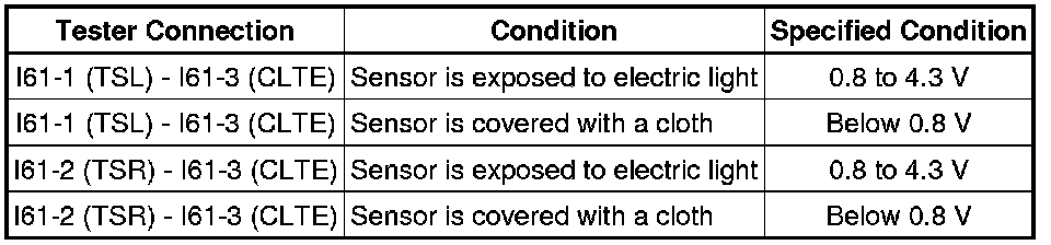 If the voltage is not as specified, replace the solar sensor (automatic light control sensor).
