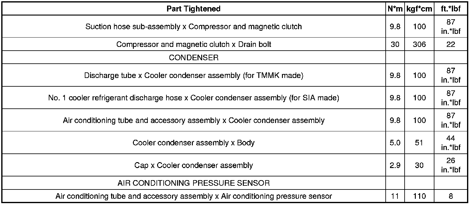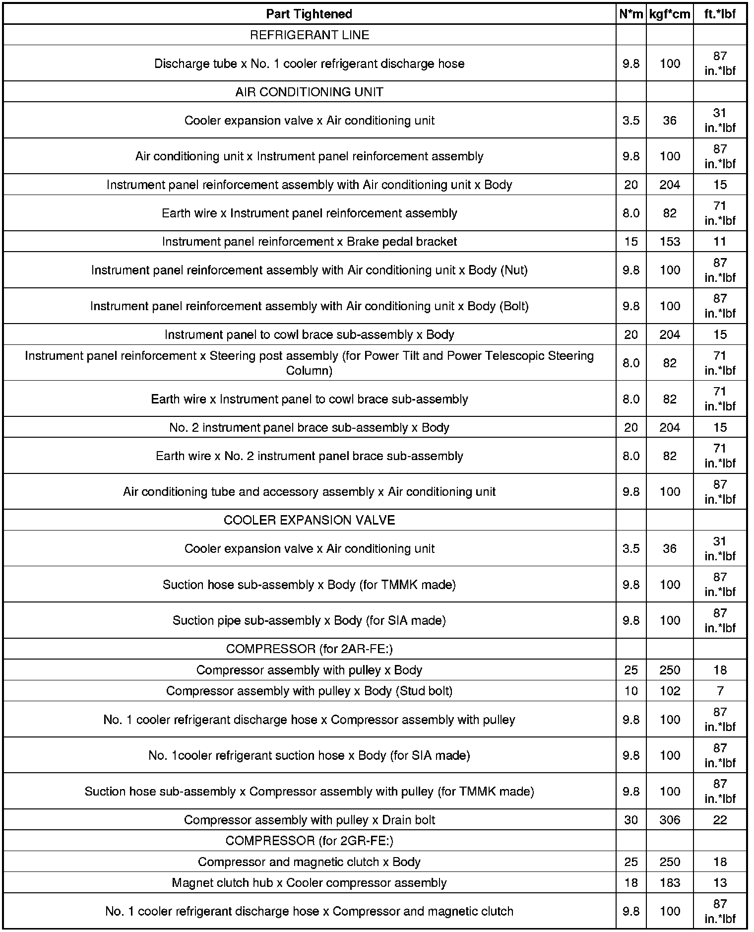 SPECIFICATIONS: HEATING / AIR CONDITIONING: TORQUE SPECIFICATIONS