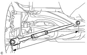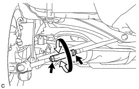 (c) If the length difference between the left and right rear No. 2 suspension arm assemblies is not within the specified range, adjust it by following the procedures below.