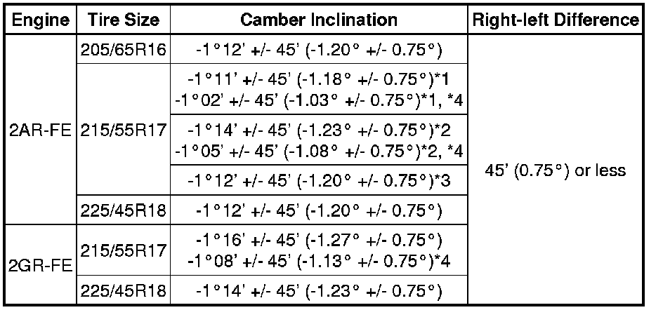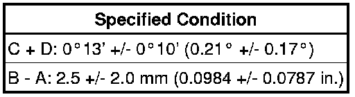 Camber is not adjustable. If the measurement is not within the specified range, inspect the suspension parts for damage and/or wear, and replace them if necessary.