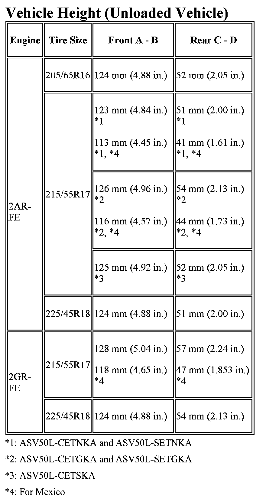 - The standard value shown here is a value that is used for adjusting the wheel alignment and does not indicate the height of an actual vehicle.