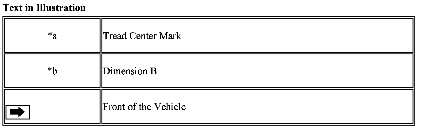 d. Put tread center marks on the rearmost points of the front wheels and measure the distance between the marks (dimension B).