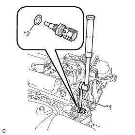 (c) Using a 19 mm ball joint lock nut wrench, remove the engine coolant temperature sensor.