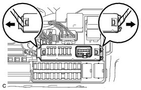 (b) Using a screwdriver with its tip wrapped in protective tape, disengage the 2 claws and disconnect the No. 1 integration relay.