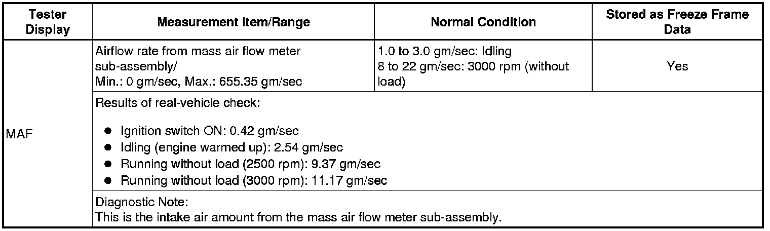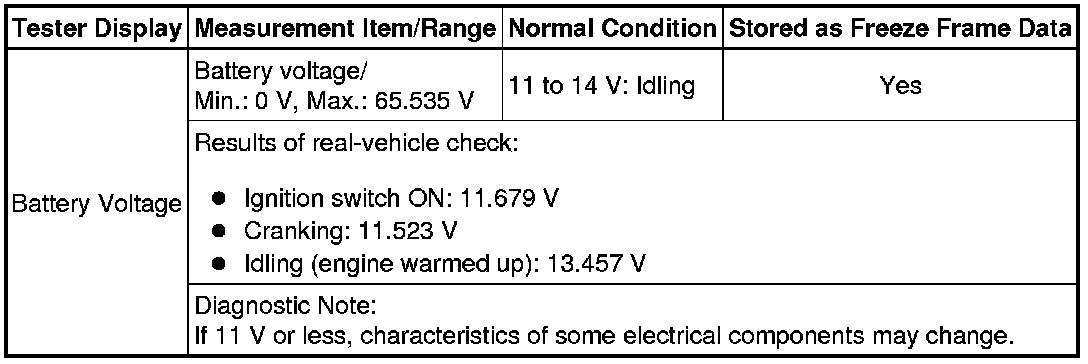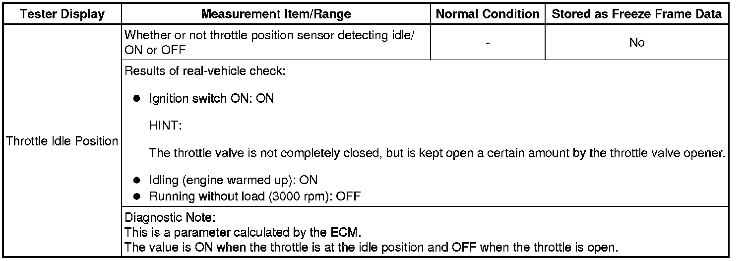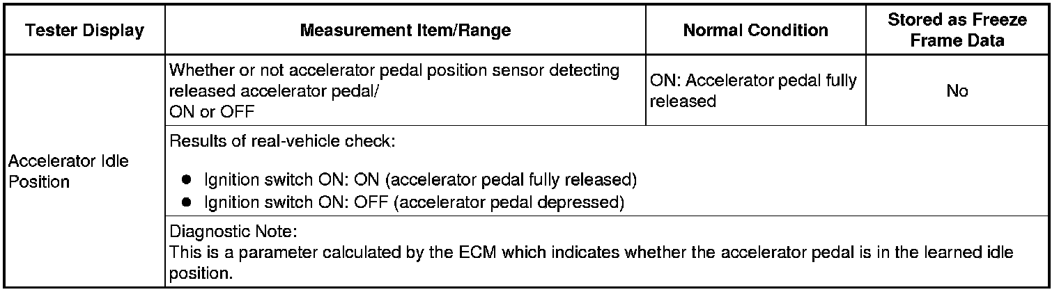 Normal Condition: If no conditions are specifically stated for "idling", the shift lever should be in N or P, the A/C switch should be off and all accessory switches should be off.