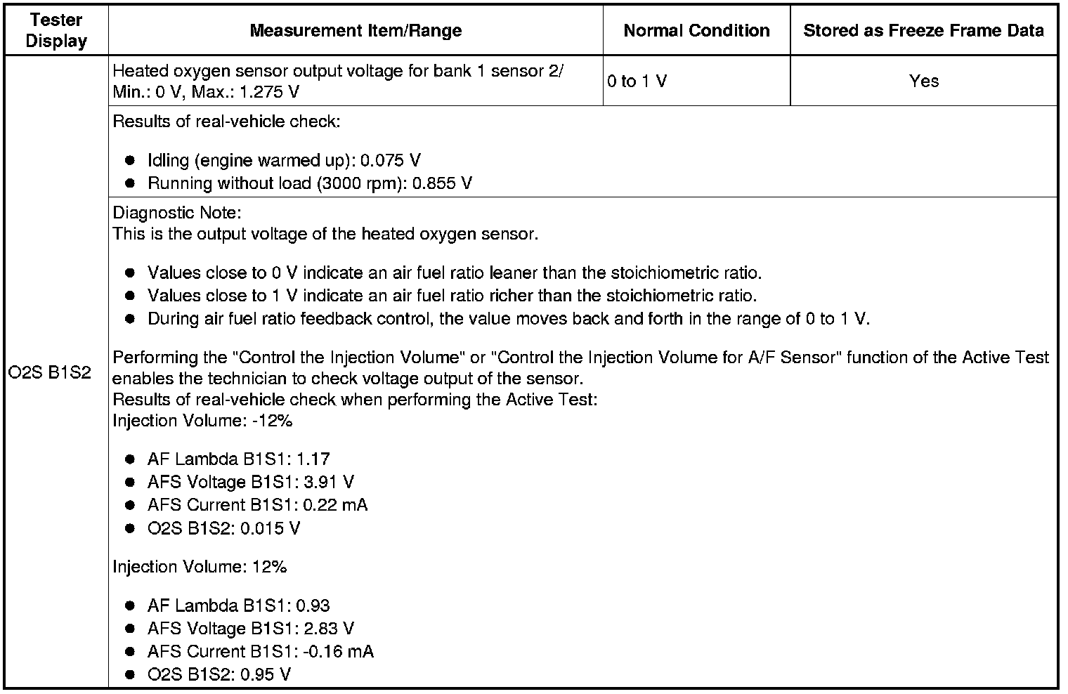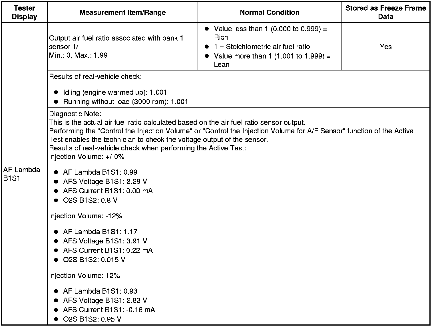 12. Air Fuel Ratio Control 1 (All Data)