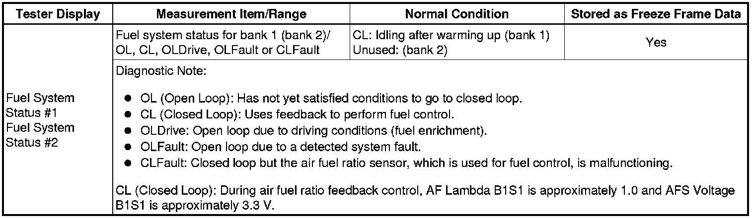 Fuel System Status #1, #2
