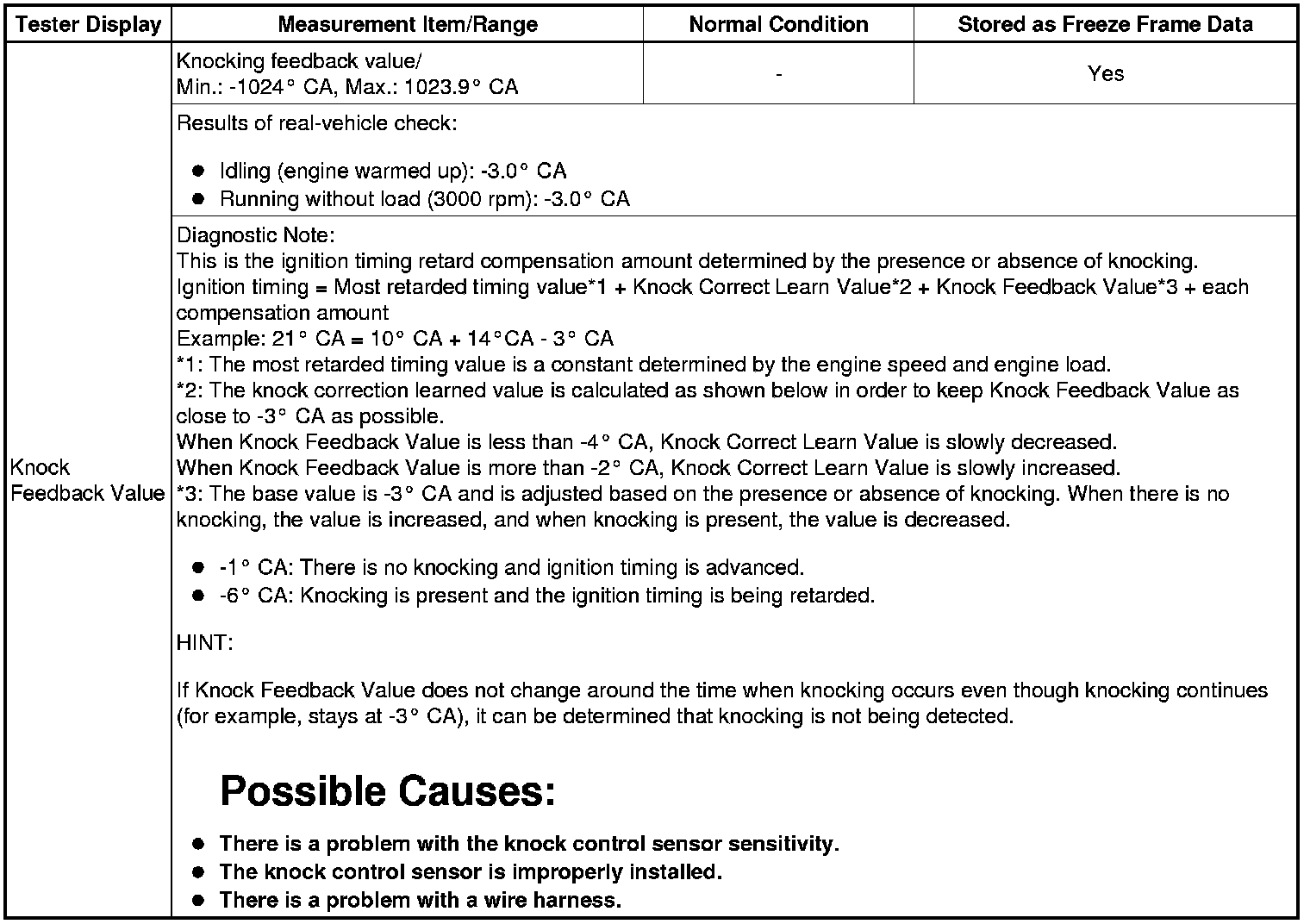 Knock Feedback Value