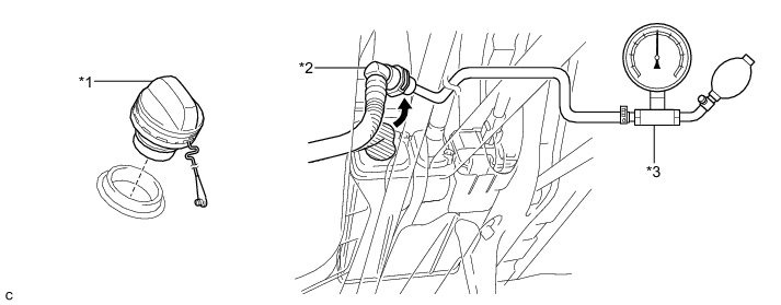 (c) Apply 4 kPa (0.04 kgf/cm2, 0.6 psi) of pressure to the vent line of the fuel tank.