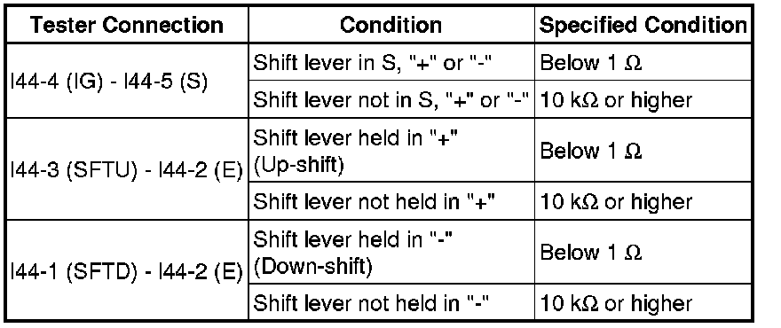 (a) Measure the resistance between each terminal of the transmission control switch when the shift lever is moved to each position.