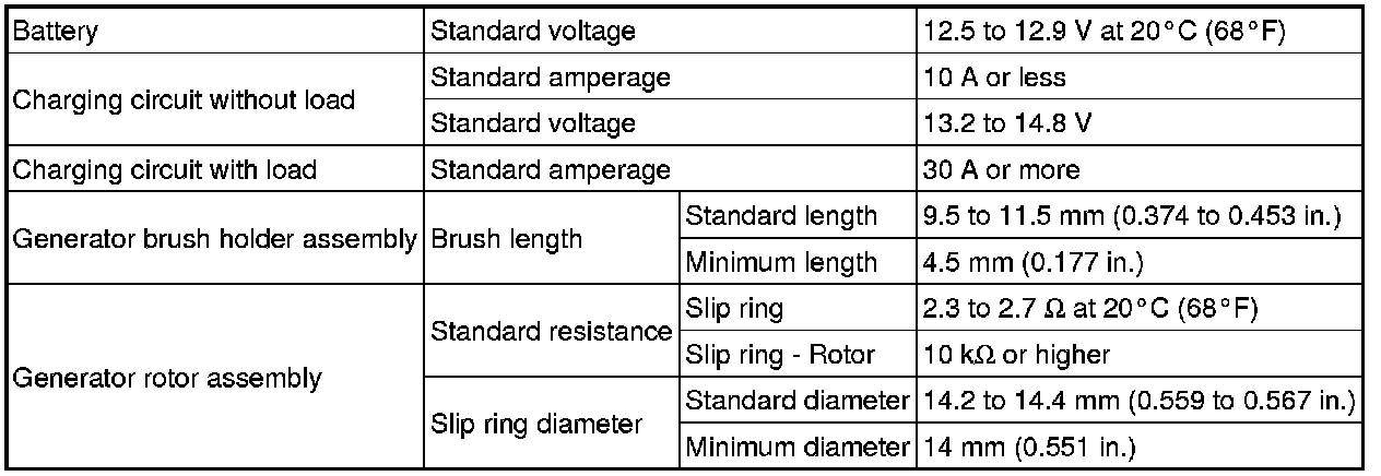 SPECIFICATIONS: 2AR-FE BATTERY / CHARGING: SERVICE DATA