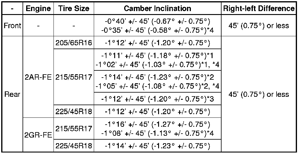 WHEEL ALIGNMENT SPECIFICATIONS (UNLOADED VEHICLE)