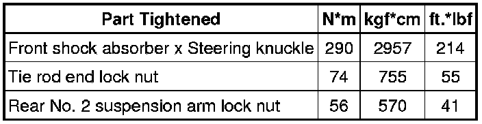 SPECIFICATIONS: ALIGNMENT / HANDLING DIAGNOSIS: TORQUE SPECIFICATIONS