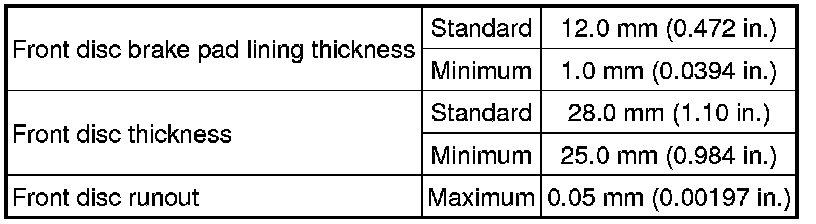SPECIFICATIONS: BRAKE (FRONT): SERVICE DATA