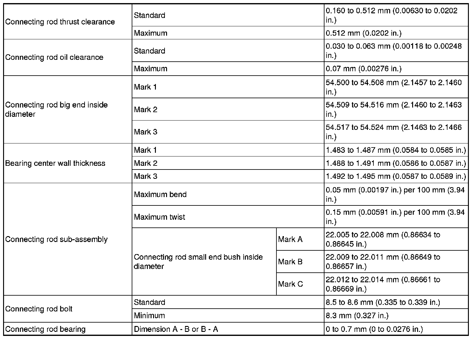 Connecting Rod Side Clearance, Out-of-Round and Diameter