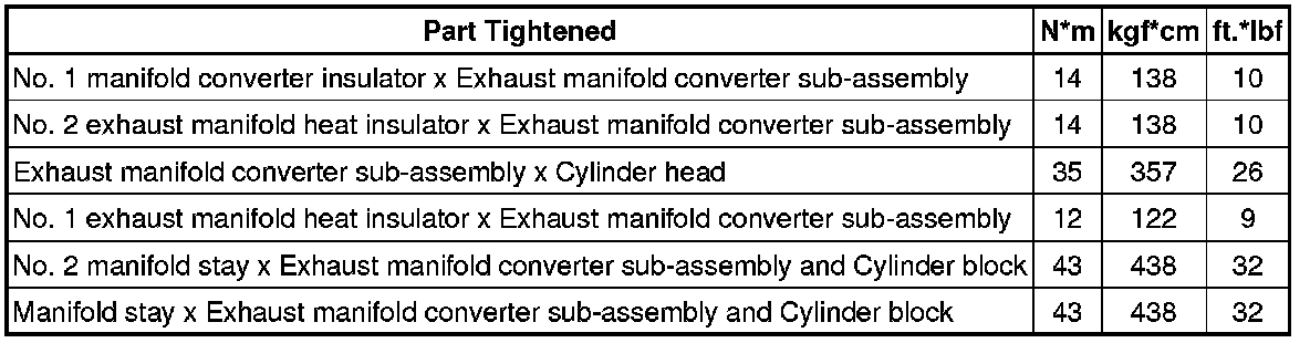 SPECIFICATIONS: 2AR-FE INTAKE / EXHAUST: TORQUE SPECIFICATIONS