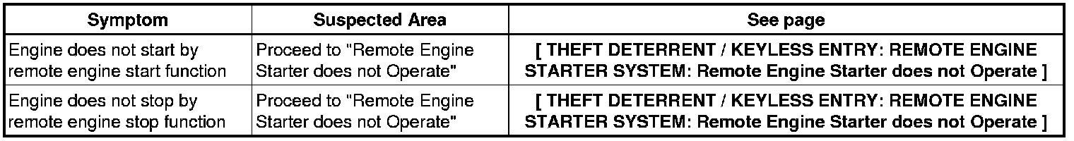 THEFT DETERRENT / KEYLESS ENTRY: REMOTE ENGINE STARTER SYSTEM: PROBLEM SYMPTOMS TABLE