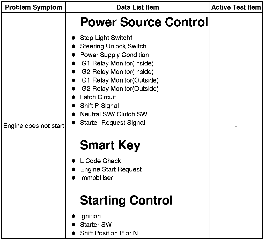 * If the smart key system is disabled through the customize function, enable the system before performing troubleshooting Smart Key System (for Start Function).