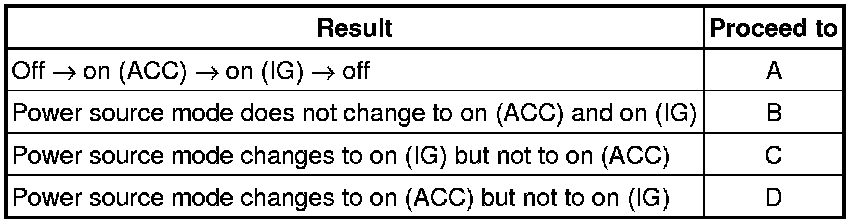 D -- GO TO POWER SOURCE MODE DOES NOT CHANGE TO ON (ACC) Power Source Mode does not Change to ON (ACC)