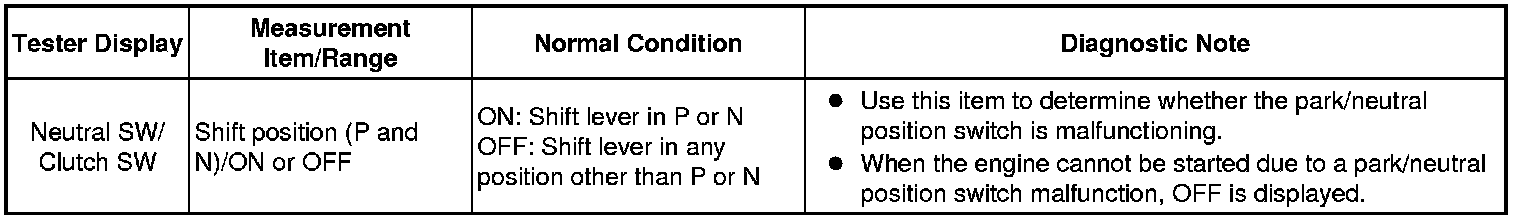 NG -- READ VALUE USING TECHSTREAM (NEUTRAL SW/ CLUTCH SW, SHIFT POSITION P OR N)