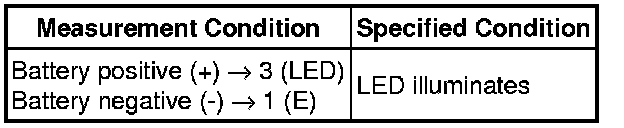 (1) Apply battery voltage to the power window regulator master switch assembly and check that the LED illuminates.
