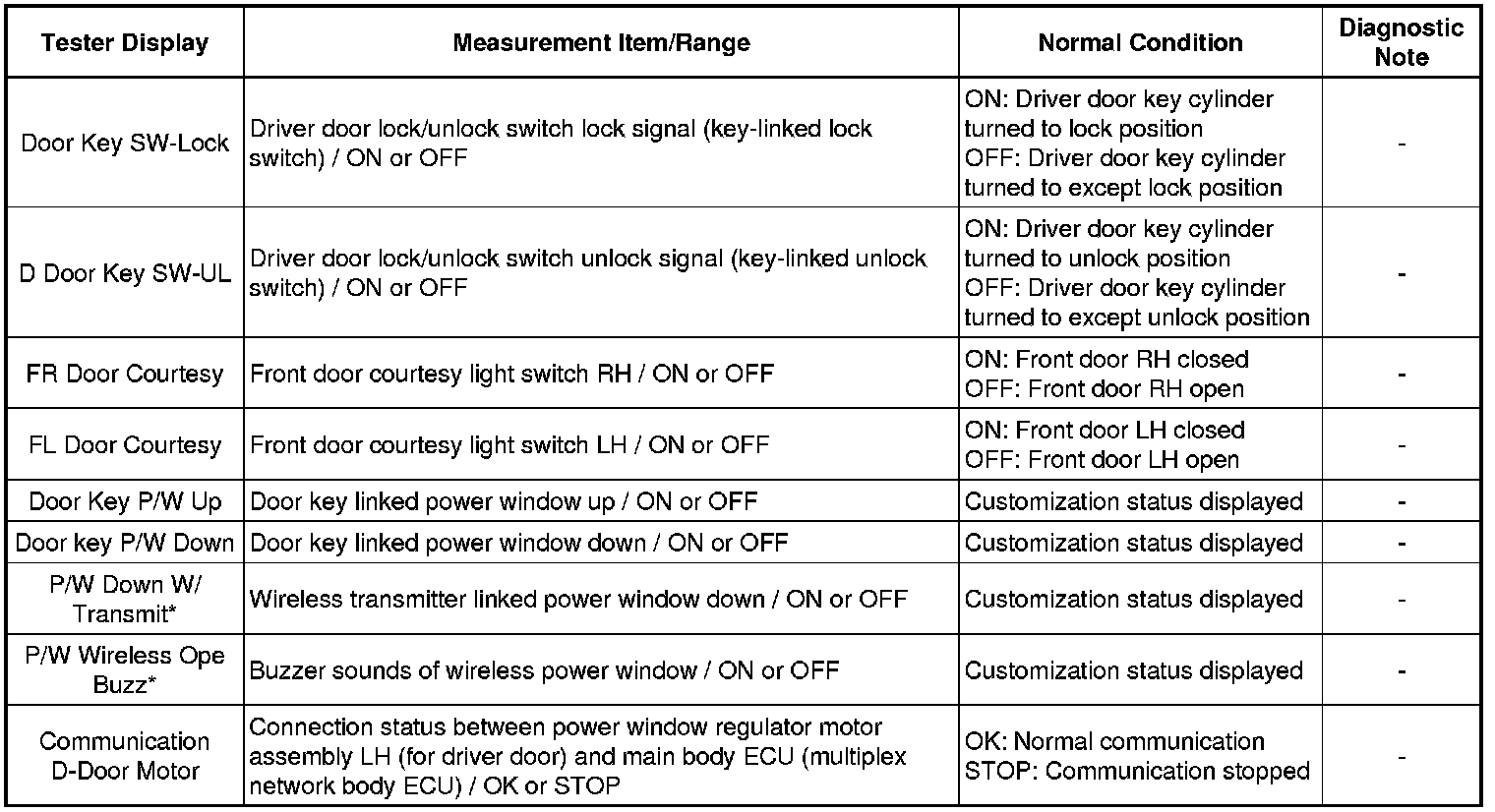 (d) Enter the following menus: Body Electrical / D-Door Motor or Main Body / Data List.