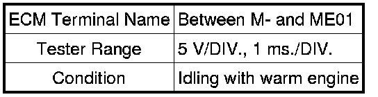 The standard voltage between each pair of the ECM terminals is shown in the table below. The appropriate conditions for checking each pair of the terminals are also indicated.