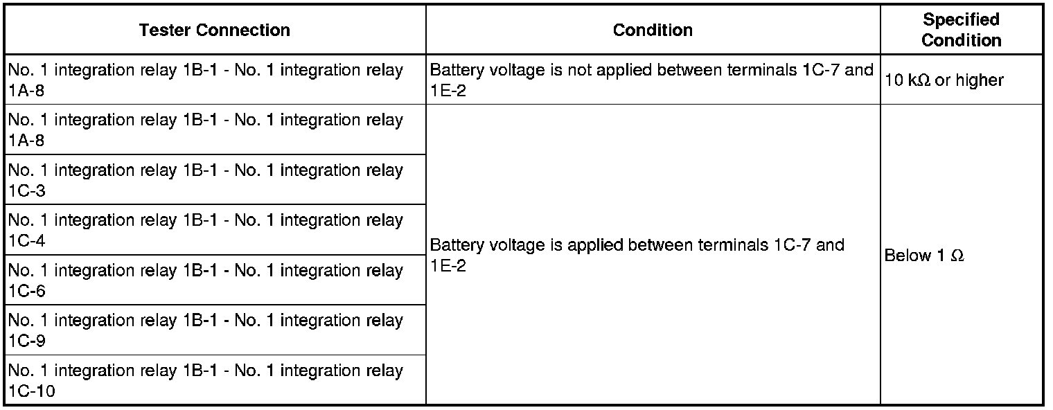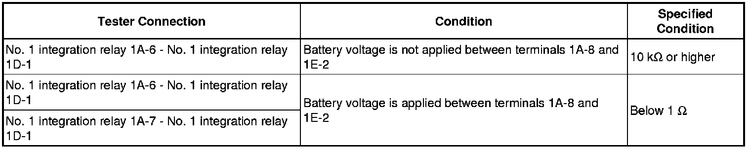 If the resistance is not as specified, replace the No. 1 integration relay.