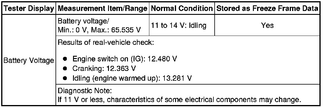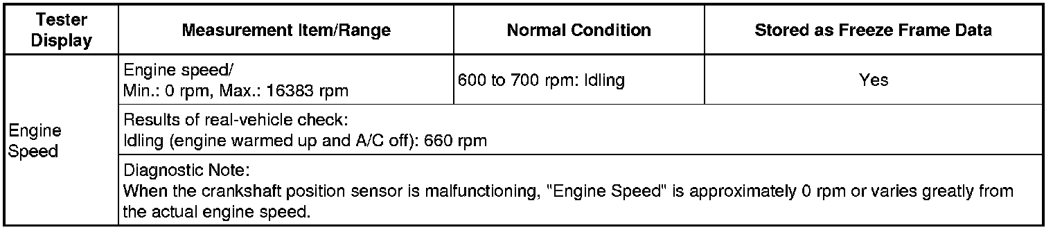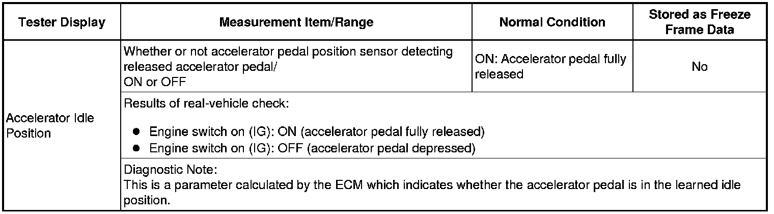 Normal Condition: If no conditions are specifically stated for "idling", the shift lever should be in N or P, the A/C switch should be off and all accessory switches should be off.