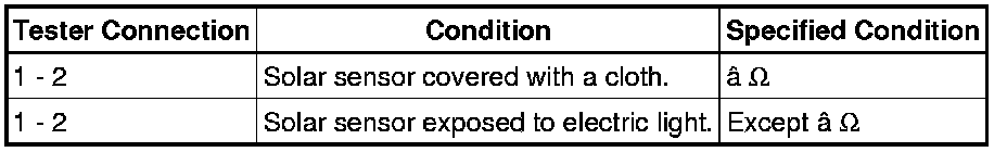 If the resistance is not as specified, replace the solar sensor.