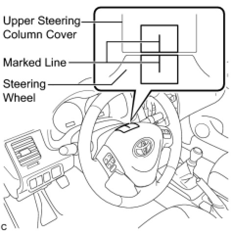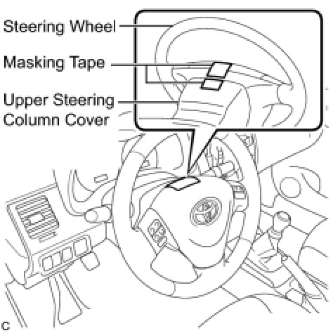(1) Apply masking tape on the top center of the steering wheel and upper steering column cover.