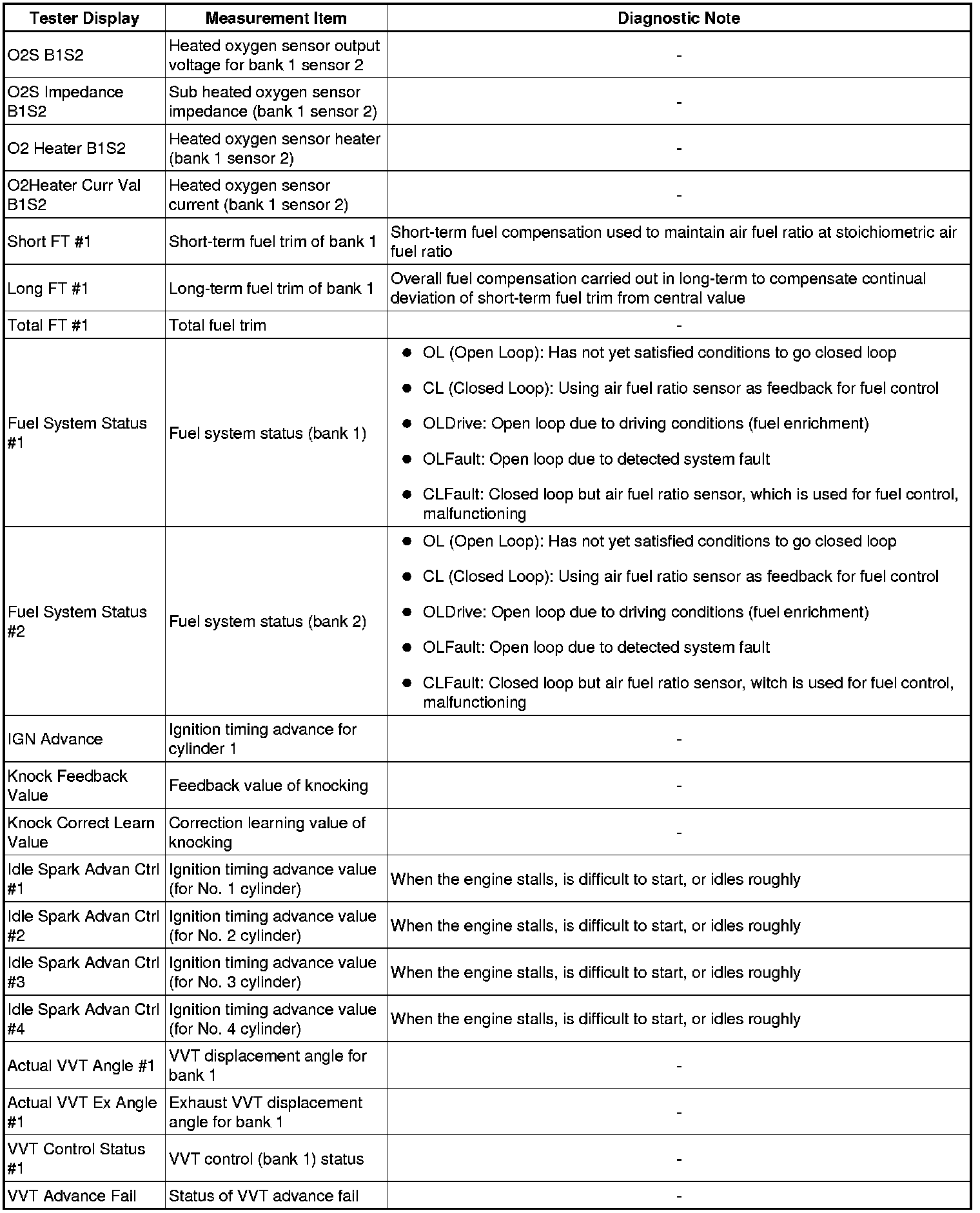 * The ECM records vehicle and driving condition information as freeze frame data the moment a DTC is stored. When troubleshooting, freeze frame data can be helpful in determining whether the vehicle was moving or stationary, whether the engine was warmed up or not, whether the air fuel ratio was lean or rich, as well as other data recorded at the time of a malfunction.