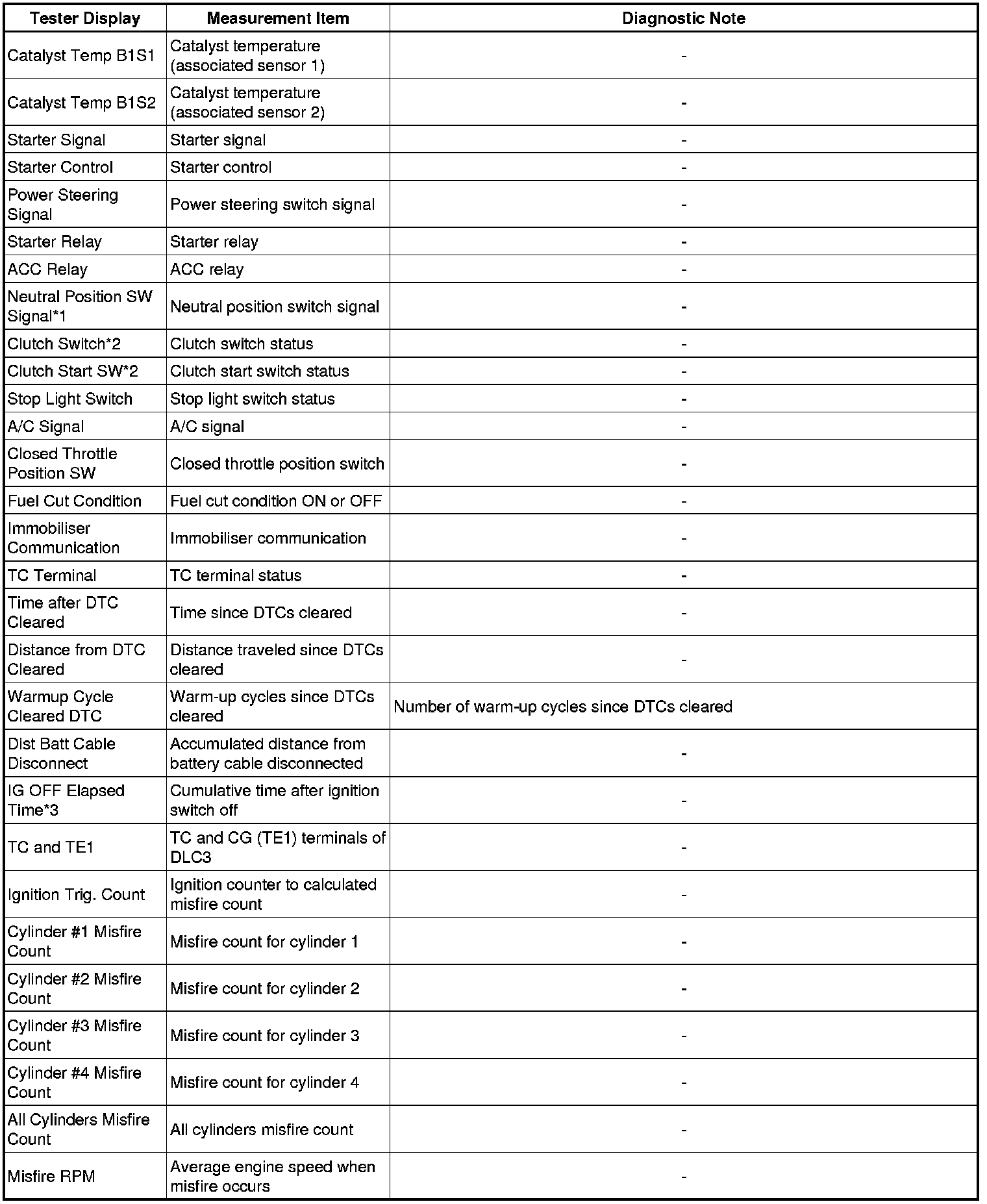 3. LIST OF FREEZE FRAME DATA