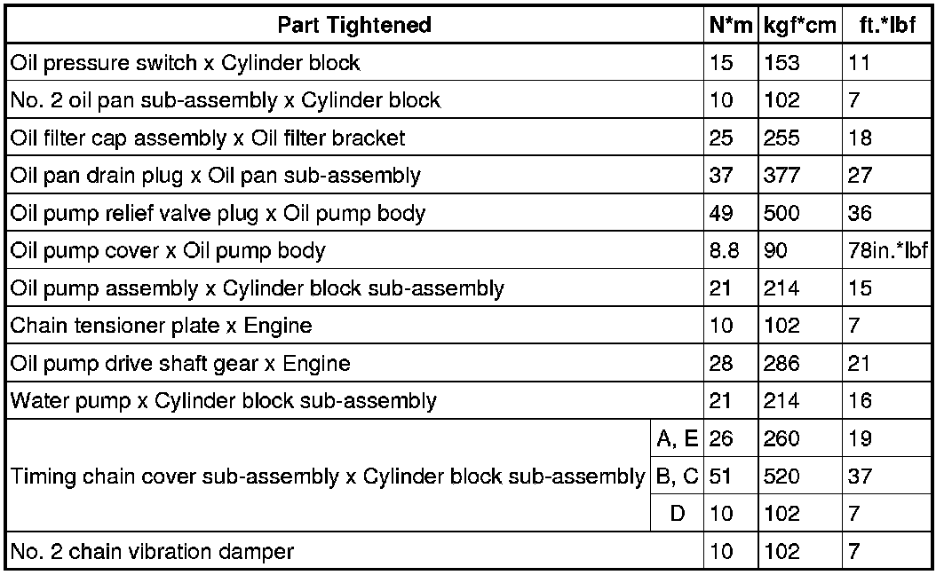 SPECIFICATIONS: 2ZR-FE LUBRICATION: TORQUE SPECIFICATIONS