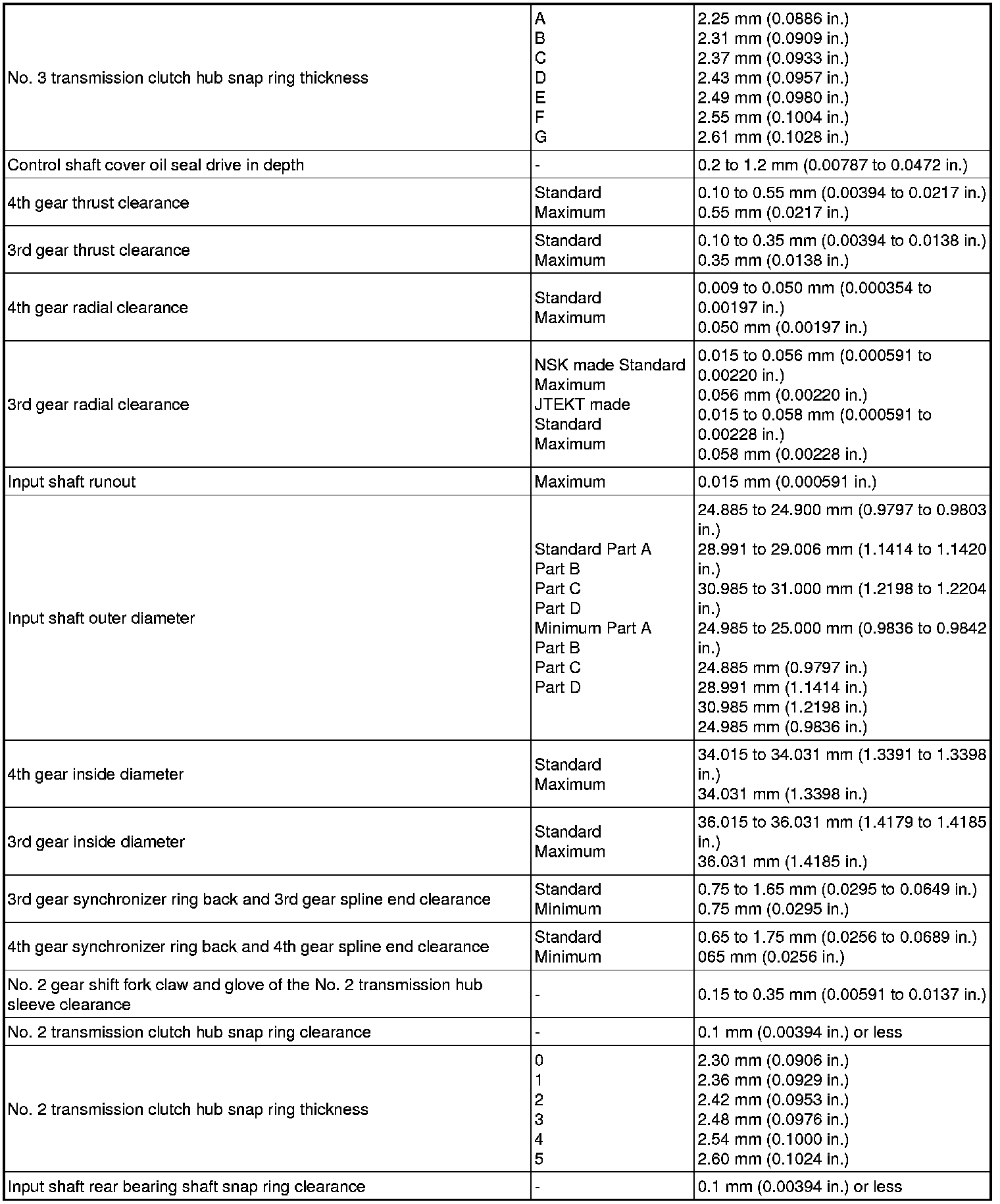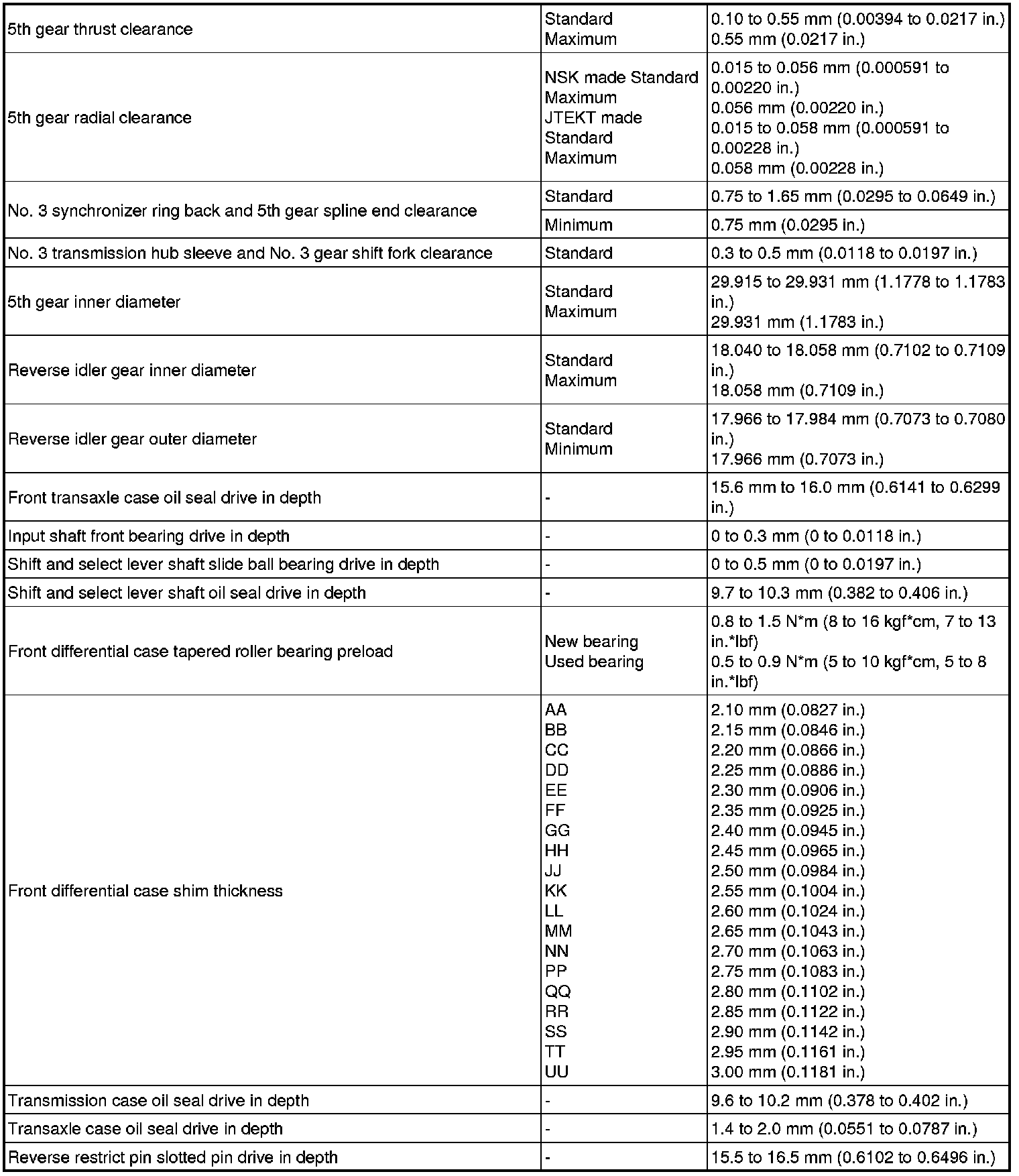 SPECIFICATIONS: C59 MANUAL TRANSMISSION / TRANSAXLE: SERVICE DATA