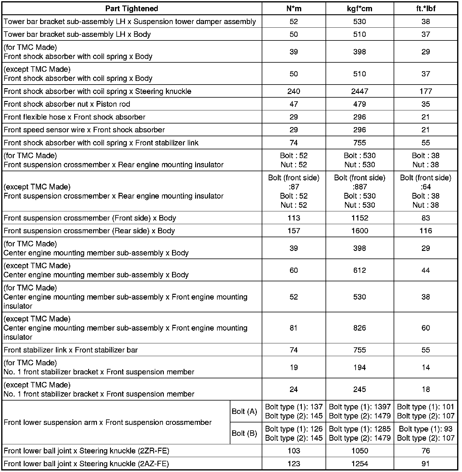 Torque Specifications