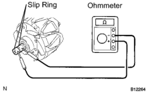 (1) Using an ohmmeter, measure the resistance between the slip rings.