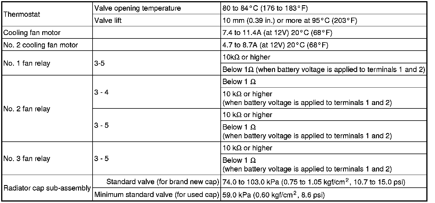 SPECIFICATIONS: 2AZ-FE COOLING: SERVICE DATA
