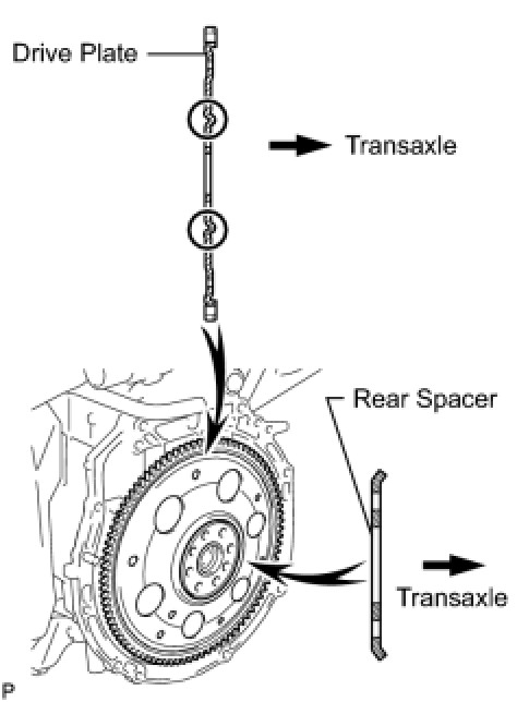 DRIVE PLATE AND RING GEAR SUB-ASSEMBLY (for Automatic Transaxle)Install the drive plate and rear drive plate spacer onto the crankshaft.