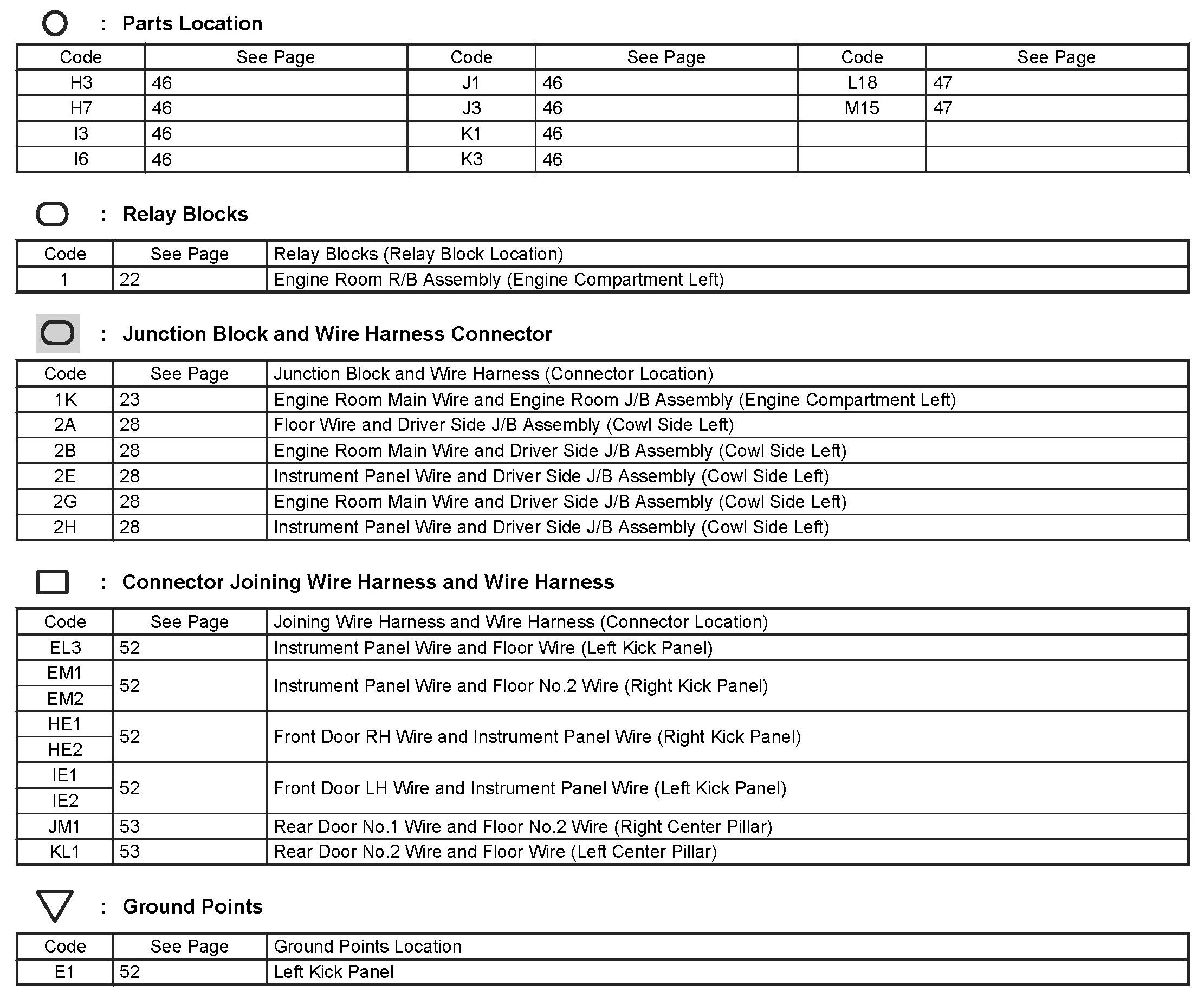 Locations: The locations of components, connectors, ground points, and splices referred to within these diagrams can be found at Vehicle Locations. Locations