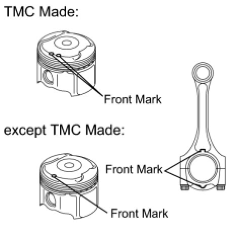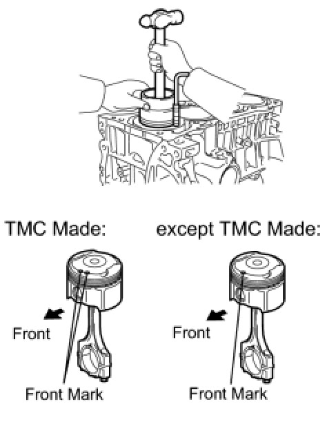 (c) Align the front marks on the piston and connecting rod, and push in the piston with a thumb.