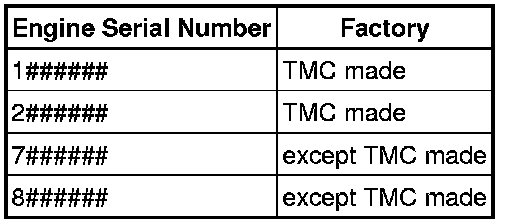 Referring to the Introduction section, check the engine serial number. Confirm the factory at which the engine was manufactured according to the following table.