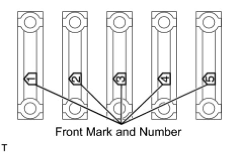 (c) Examine the front marks and install the bearing caps on the cylinder block.