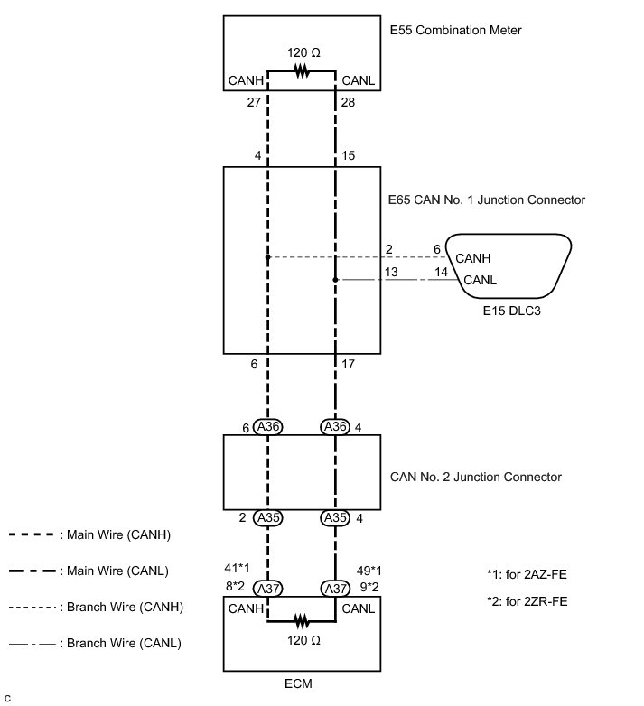 C -- CHECK FOR OPEN IN CAN BUS MAIN WIRE (CAN NO. 2 JUNCTION CONNECTOR - ECM)