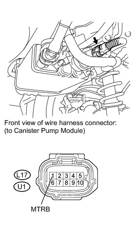 * When replacing the canister, check the canister pump module interior and related pipes for water, fuel and other liquids. If liquids are present, check for disconnections and/or cracks in the following: 1) the pipe from the air inlet port to the canister pump module; 2) the canister filter; and 3) the fuel tank vent hose.